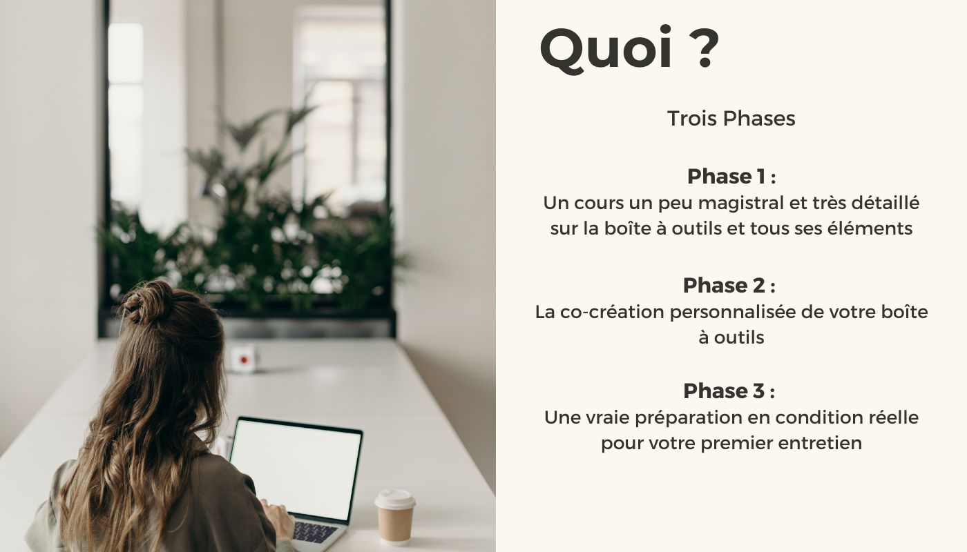 – La boîte à outils (recherche, réseautage, CV, lettre de motivation).